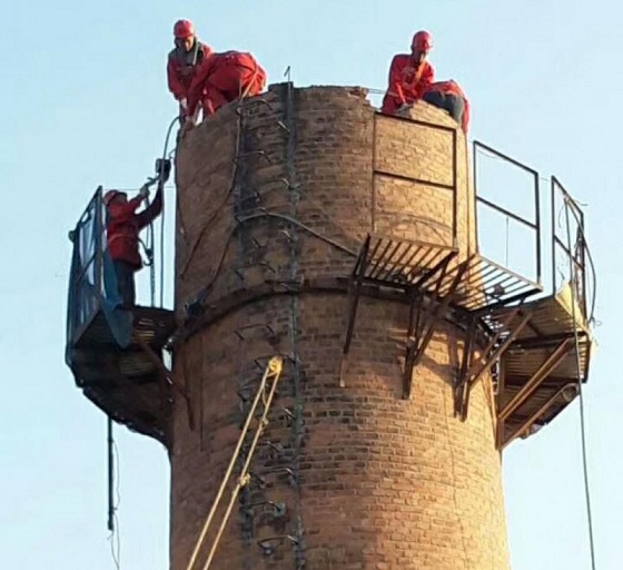 日前,開發(fā)區(qū)管委會開展“排隱患、保安全”活動時,一站就到了這里,經(jīng)過實地考察,確認(rèn)該煙囪年久失修,無法再投入使用。為防止該煙囪對周邊企業(yè)及過往行人造成傷害,開發(fā)區(qū)管委會組織相關(guān)負(fù)責(zé)人研究討論后,自行聯(lián)系高空作業(yè)的施工人員商量解決辦法。