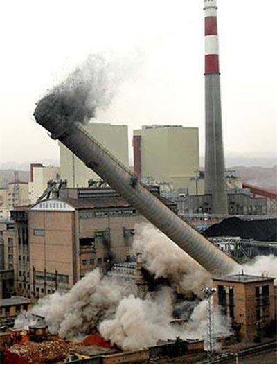 2008年9月20日,大唐華銀株洲火力發(fā)電有限公司的一根煙囪爆破拆除。這根鋼筋混凝土煙囪高180米,是國內(nèi)第二高、省內(nèi)第一高的煙囪,建于1992年,相當(dāng)于50層樓高。據(jù)統(tǒng)計,株洲城區(qū)原有煙囪459根,近三年來已拆除煙囪286根,今年列入拆除計劃中的有32根。