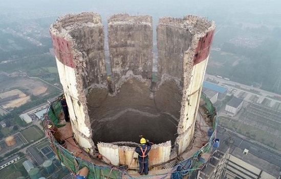 在人口稠密的城市居民區(qū)或繁華街道及各種設(shè)備密集的廠礦區(qū)內(nèi),廢棄的煙囪、水塔等高聳結(jié)構(gòu)物及地震后的高大的危險(xiǎn)建筑物,目前常采用爆破法拆除。爆破拆除法是利用炸藥爆炸破壞建筑物的某一局部,造成建筑物在自重作用下定向倒塌,成就地坍塌。用控制爆破法拆除,能獲得效率高、速度快、費(fèi)用省和安全可靠的顯著效果。